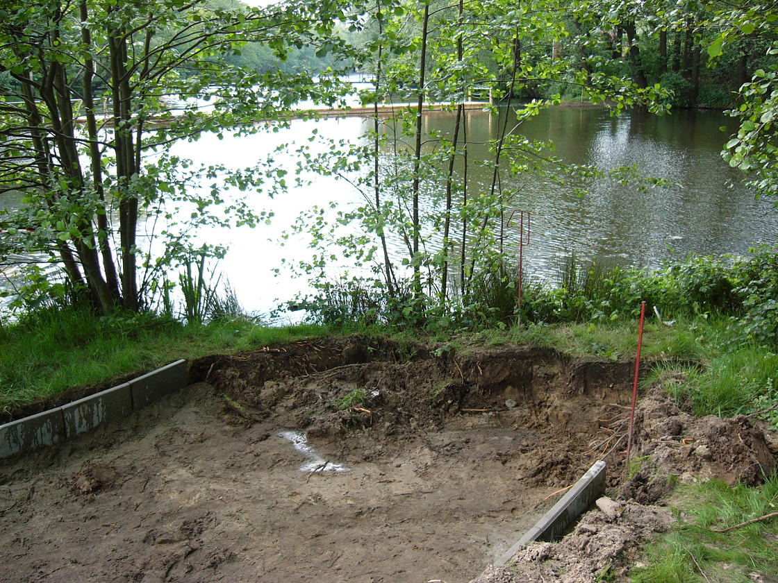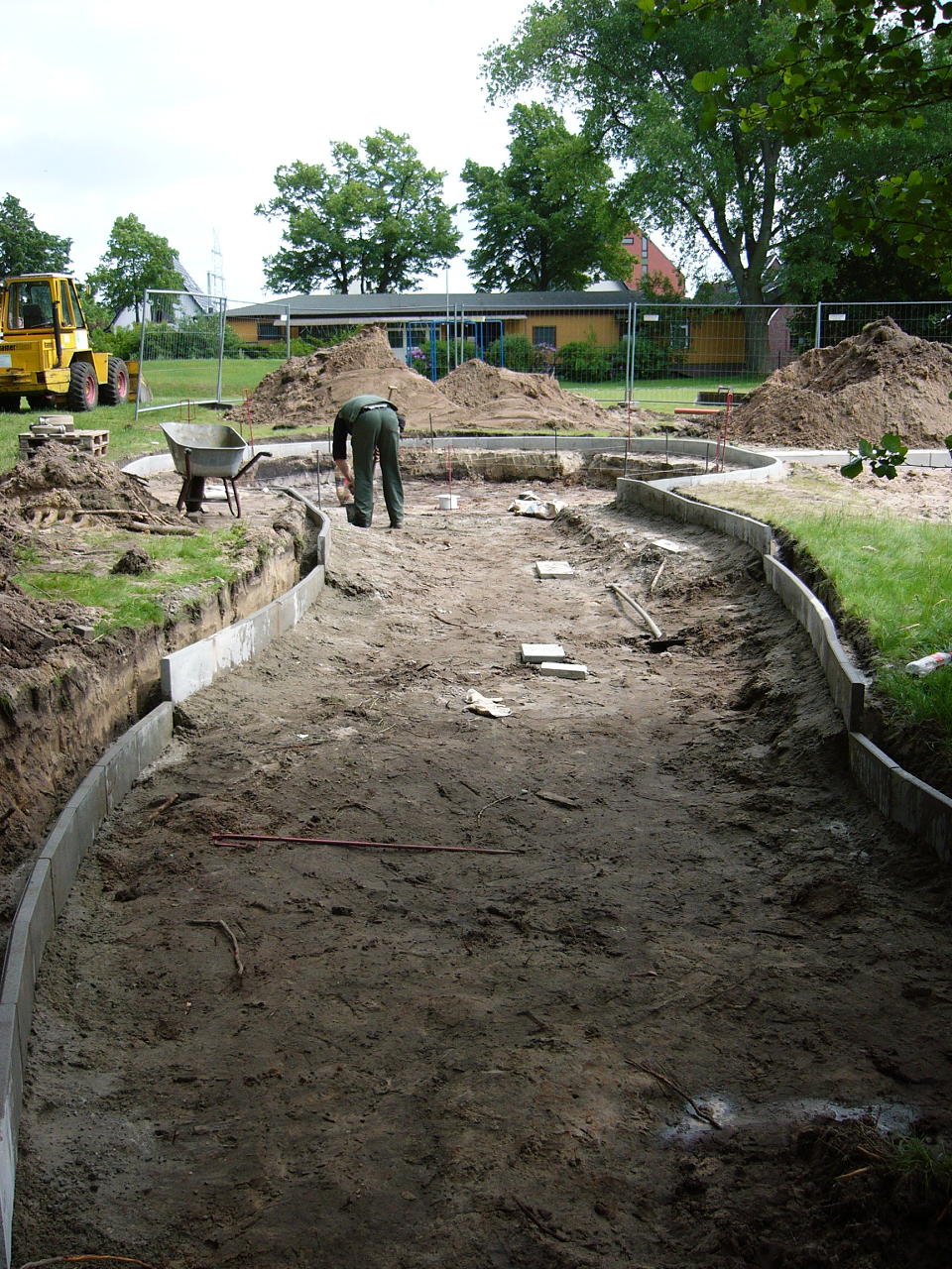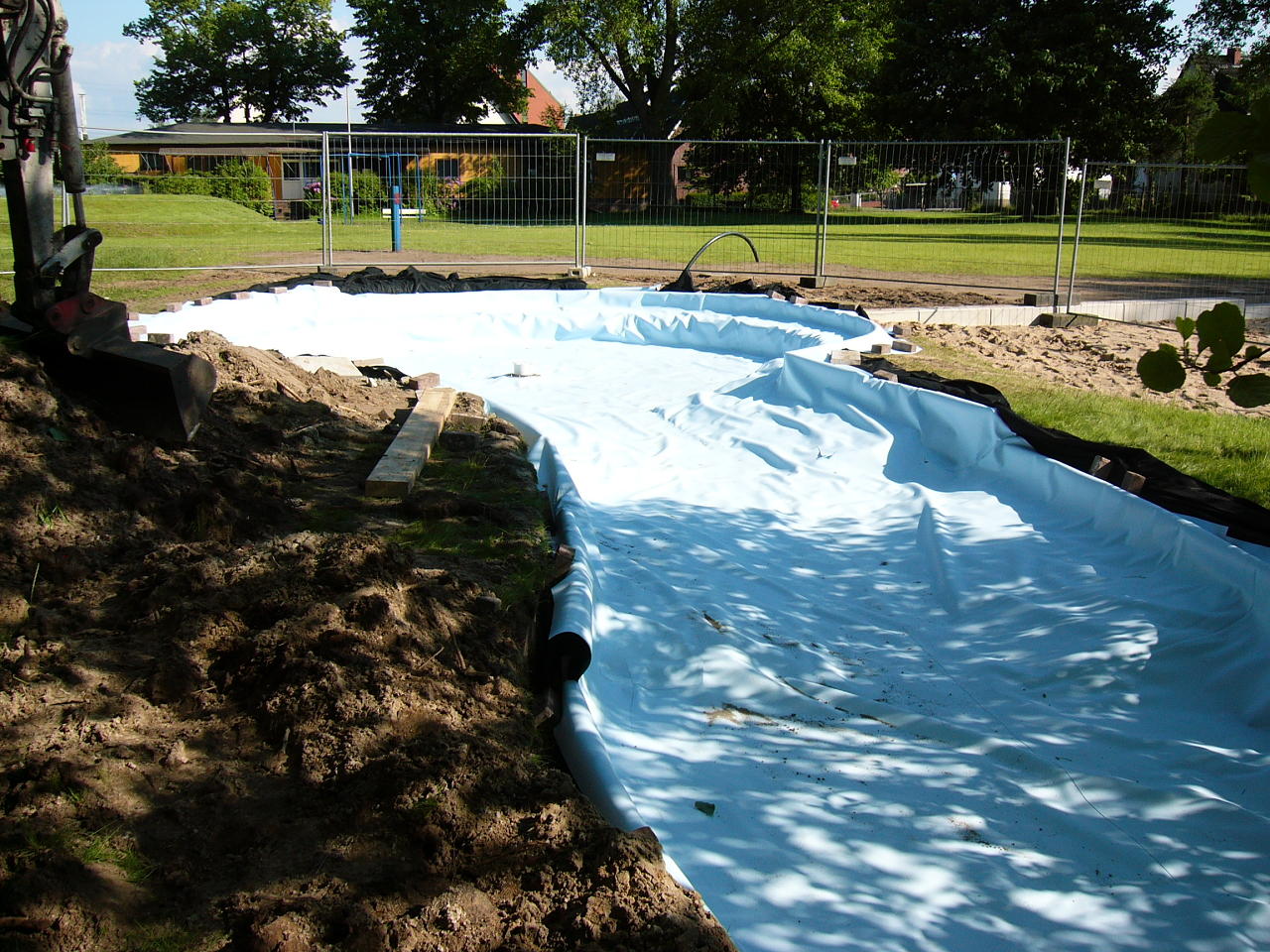 Hier liegt bereits die Plane aus, die weiteren Arbeiten können nach Pfingsten beendet werden!