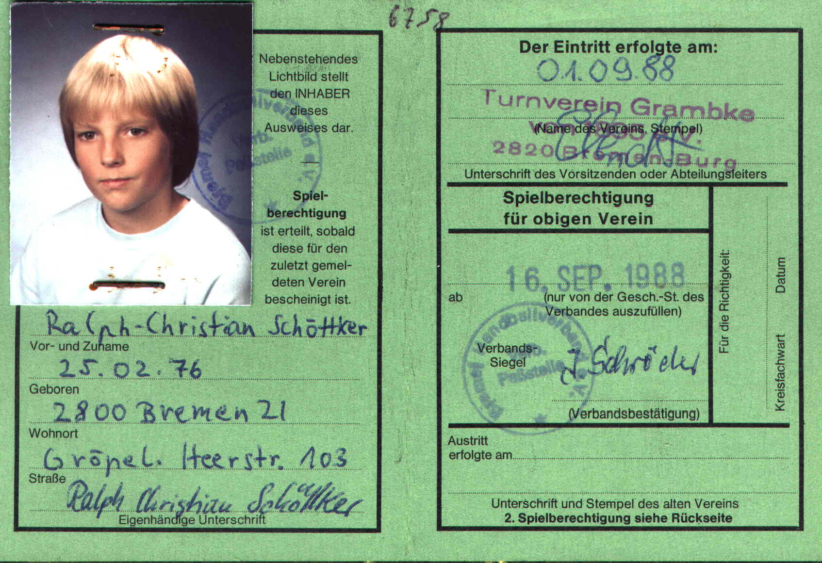 dort als Lehrer für Mathematik und Latein zurückkommen. Mit etwas Glück findet er in Bremen eine Stelle und bleibt seinem Verein noch lange treu verbunden.