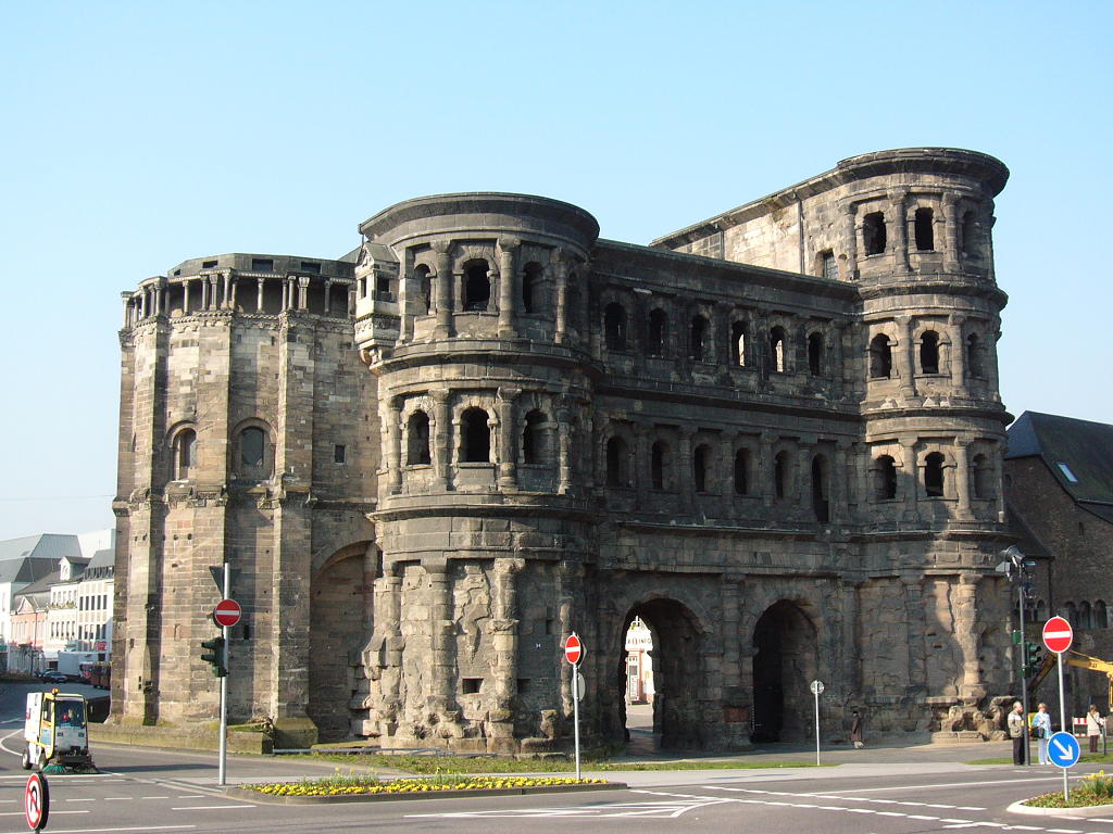Wahrzeichen der Stadt Trier: Ein ehemaliges Stadttor, eines der am besten erhaltensten römischer Bauart, die Porta Nigra.